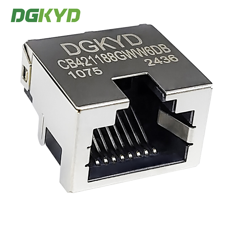 Conector RJ45 SMT de bajo perfil con blindaje metálico, conector RJ45 SMT para placa de circuito, 4.2 DIP con blindaje y luz DGKYDCB421188AB1W6DB1075